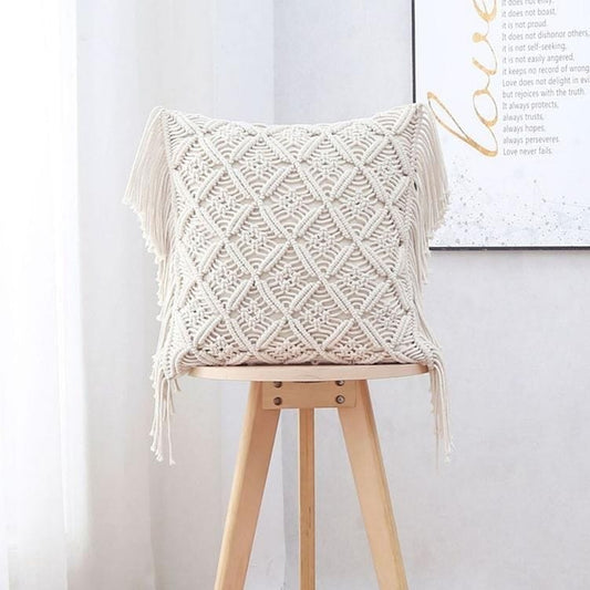 Coussin Macramé Ethnique Blanc - Élégance Artisanale